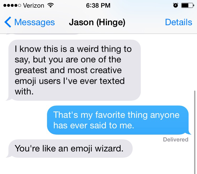 And Then I Fell In Love December 23, 2014Dating/Single LifeEmily He had me at emoji wizard. #modernromance Share this: Click to share on X (Opens in new window) X Click to share on Facebook (Opens in new window) Facebook Like Loading... Related