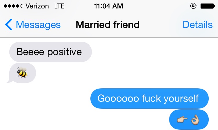 Things Single People Don’t Want to Hear From Their Married Friends January 24, 2015Dating/Single Life, Friendsbeing single, dating, dating advice, dating in nyc, friends, online dating, single lifeEmily As I vented about dating, a married friend offered this advice: I think we can all agree she deserved that. Share this: Click to share on X (Opens in new window) X Click to share on Facebook (Opens in new window) Facebook Like Loading... Related