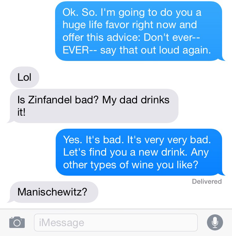 1. Well done. “good friends don’t let friends drink white Zin”!!