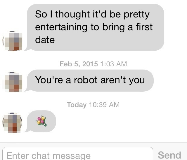 This Hilarious Prankster February 21, 2015Dating/Single Lifebeing single, dating, dating advice, dating apps, dating in nyc, dating profiles, flirting, jswipe, modern dating, modern romance, online dating, single life, texting, this guy, this is what's out thereEmily More one-way conversations. This time from J-Swipe. Please note the date stamps. Share this: Click to share on X (Opens in new window) X Click to share on Facebook (Opens in new window) Facebook Like Loading... Related