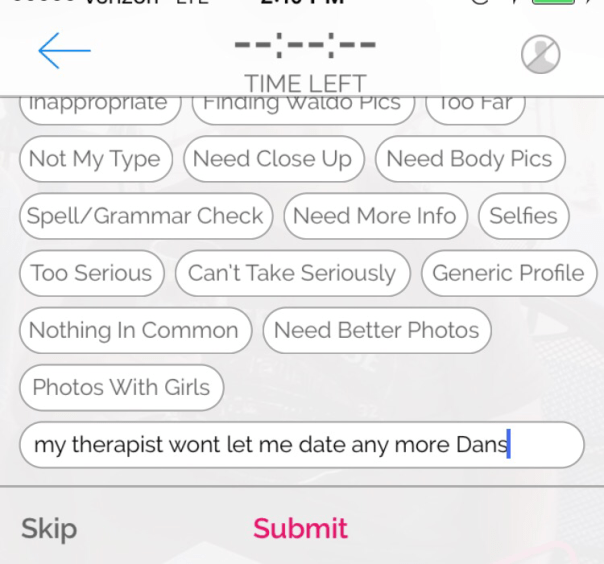 Always Be Honest With Your Dating App, Part 10 March 19, 2015Dating/Single Lifedating, dating apps, feedback, modern dating, online datingEmily (Part of the Always Be Honest With Your Dating App series) Share this: Click to share on X (Opens in new window) X Click to share on Facebook (Opens in new window) Facebook Like Loading... Related