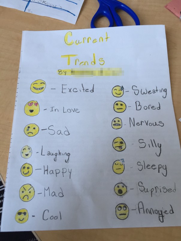 No, I haven’t influenced these kids at all. June 24, 2015Kids/Teachingemoji, kids, school, teaching, trendsEmily Why do you ask? Share this: Click to share on X (Opens in new window) X Click to share on Facebook (Opens in new window) Facebook Like Loading... Related