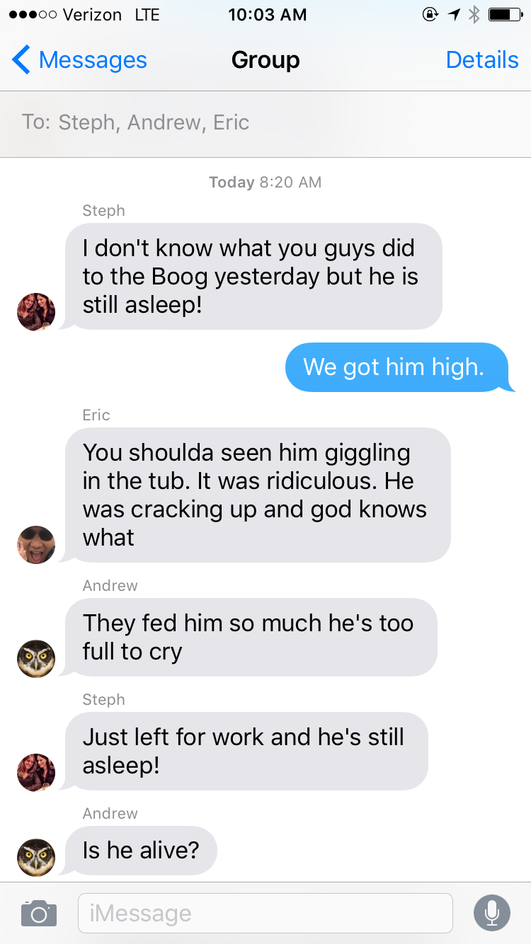 Babysitters of the Year May 16, 2016Familybabies, babysitting, children, family, family dynamics, parenthoodEmily Yesterday Eric and I babysat my nephew (aka “The Boog”) for the entire day while my sister and brother in law were on Long Island. We put him to bed at 7:00pm. Um, YOU’RE WELCOME. Share this: Click to share on X (Opens in new window) X Click to share on Facebook (Opens in new window) Facebook Like Loading... Related