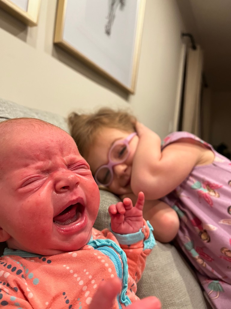 ….Nora found the humor in them and always tried her best to be a comforting big sis to the atomic bomb that was newborn Sophie.