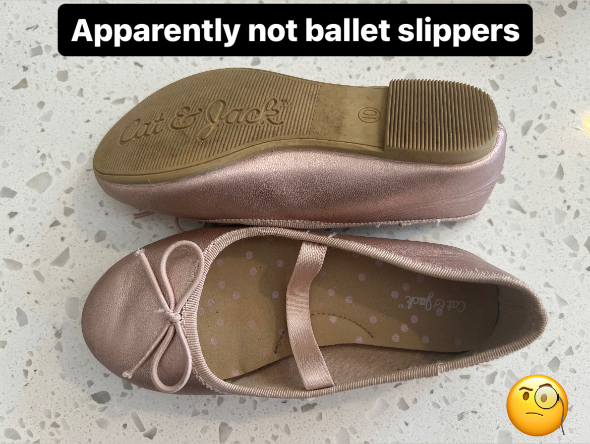 Instructor: “Well, you can tell because they’re not slippers. And they’re not, you know…for ballet.”