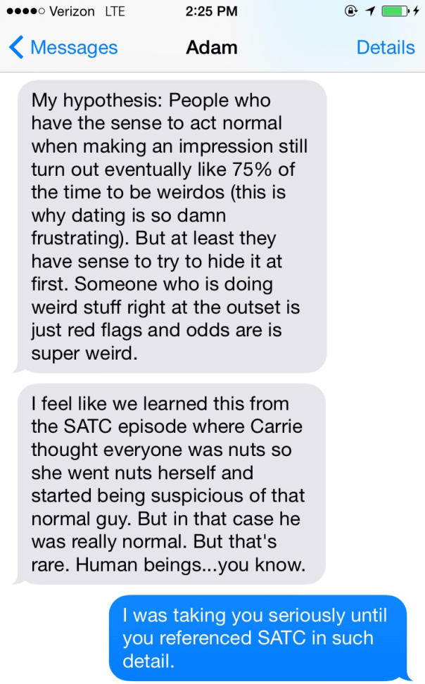 Last week I spent seven days with the same fly. I pretty much accepted on day 5 that we were roommates now, so I gave him a name (“Fly Guy”….it had been a long day) and I started to contemplate ways I could make the apartment more comfortable for him. Then, just as I’m googling “Do flies like pop music?” Fly Guy landed right in front of me on the coffee table. So I did what any good roommate would do– I beat him repeatedly with a People magazine while screaming “WHO LIVES HERE NOW, BITCH?!?!” and then texted Eric “I killed that motherfucking fly!” with no less than 14 gold trophy emojis.