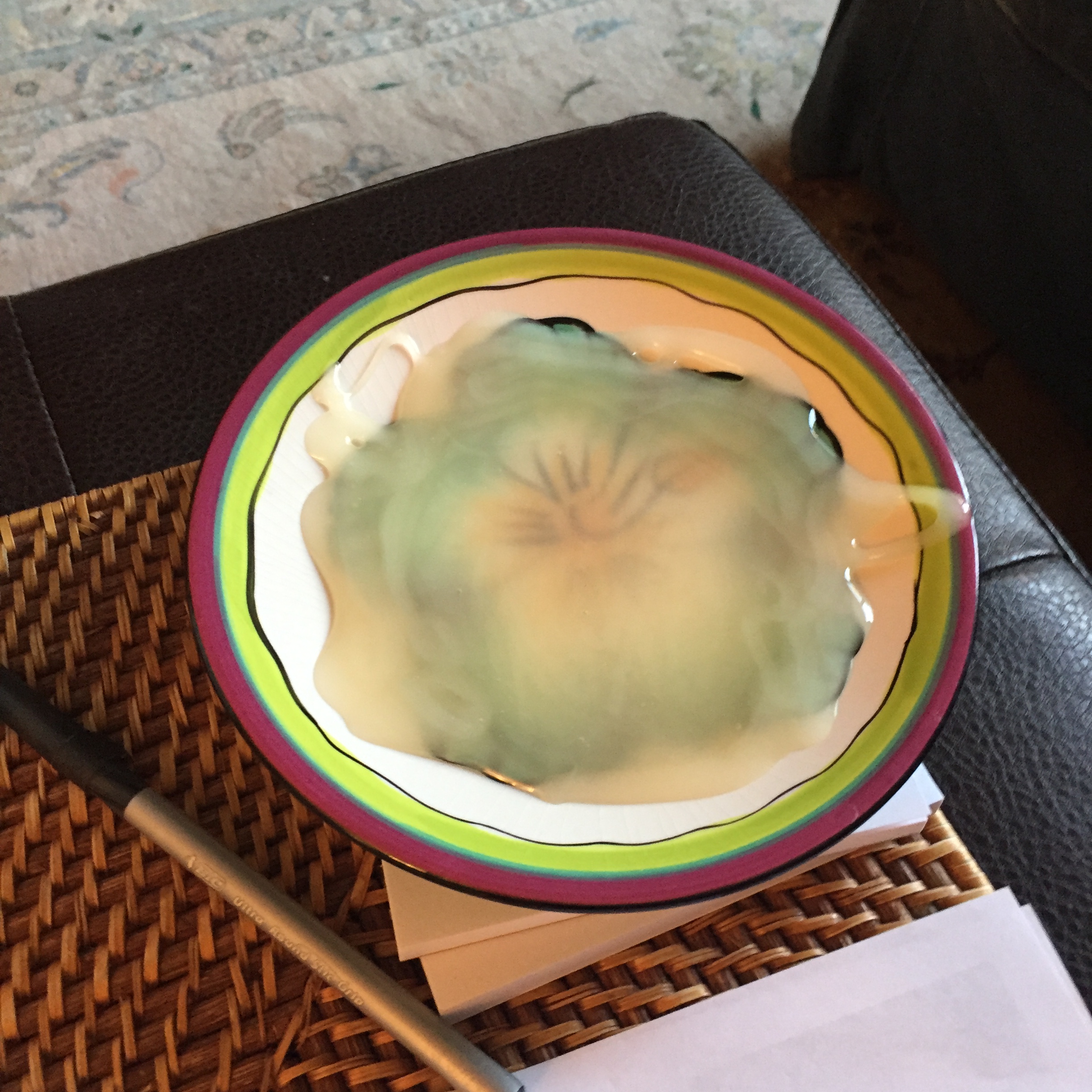 So an hour ago on the phone, when the fly came in and I screamed, “I can’t handle ANOTHER FLY!”, Eric agreed that this was, in fact, the most stressful situation a human being could possibly find herself in. He then suggested an old trick that works every time– covering a plate in honey. The flies, he promised, would instantly be attracted to it, fly on top, and get stuck. “But you have to cover the WHOLE plate in a thick coat of honey. The more surface area, the better. Don’t just dabble it on there.” I promised I would do it correctly.