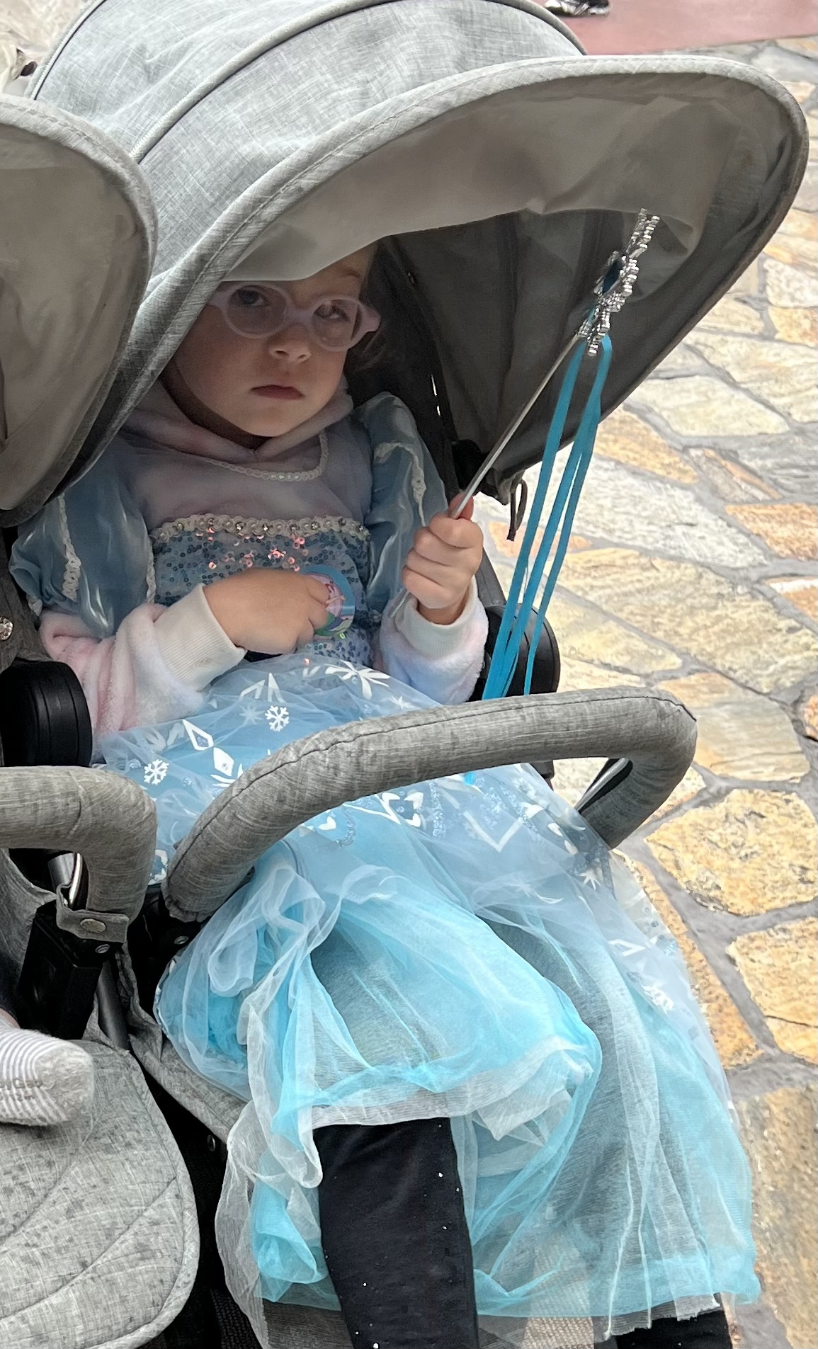 At some point we came up with the brilliant idea of having her put on her Elsa costume, certain that a little princess flair would cause the tides of rage to turn.