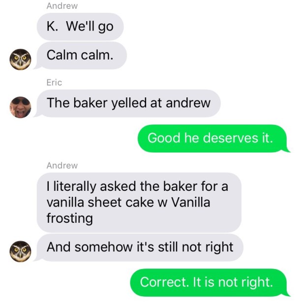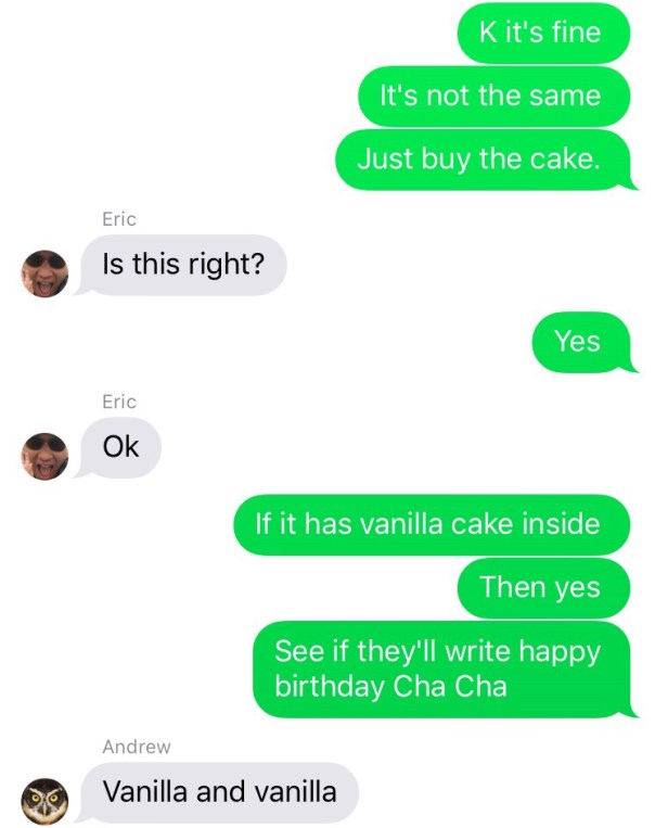 Nanny (looking at phone calendar): “Oh wait sorry, I mixed up the time– the party is not in the afternoon, it’s in the morning. So YOU can bring Nora.”