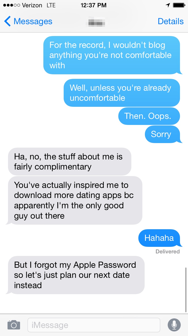 That moment when you’re on a 6th date with someone, and you’re wondering how you should tell him about the fact that you have a blog about dating (slash mental health…slash teaching…slash family…slash most details of your everyday existence). So you resolve to tell him soon, but first you want to go back and delete any weird posts he might be referenced in.