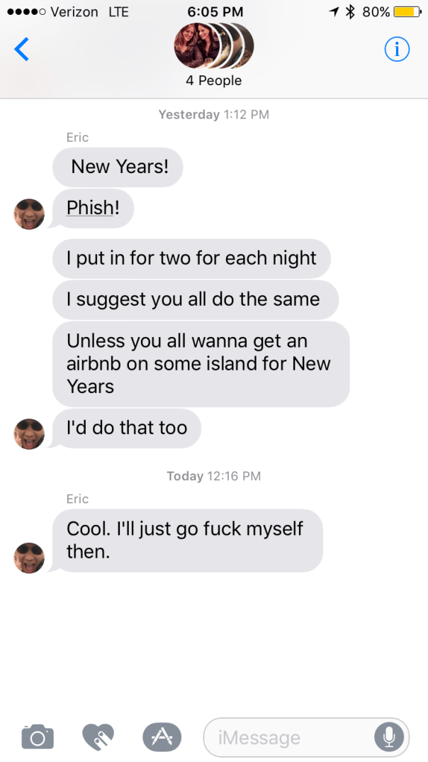 There was a faint rumor (aka, Steph mentioned it once) weeks ago that Mom and Dad were going to come to NY next weekend for Dad’s birthday, and the whole family was going to go to dinner. Naturally, no one has heard anything since. So I decided (like a fucking Lerman Family amateur) to check in with the siblings and see if anyone had information…