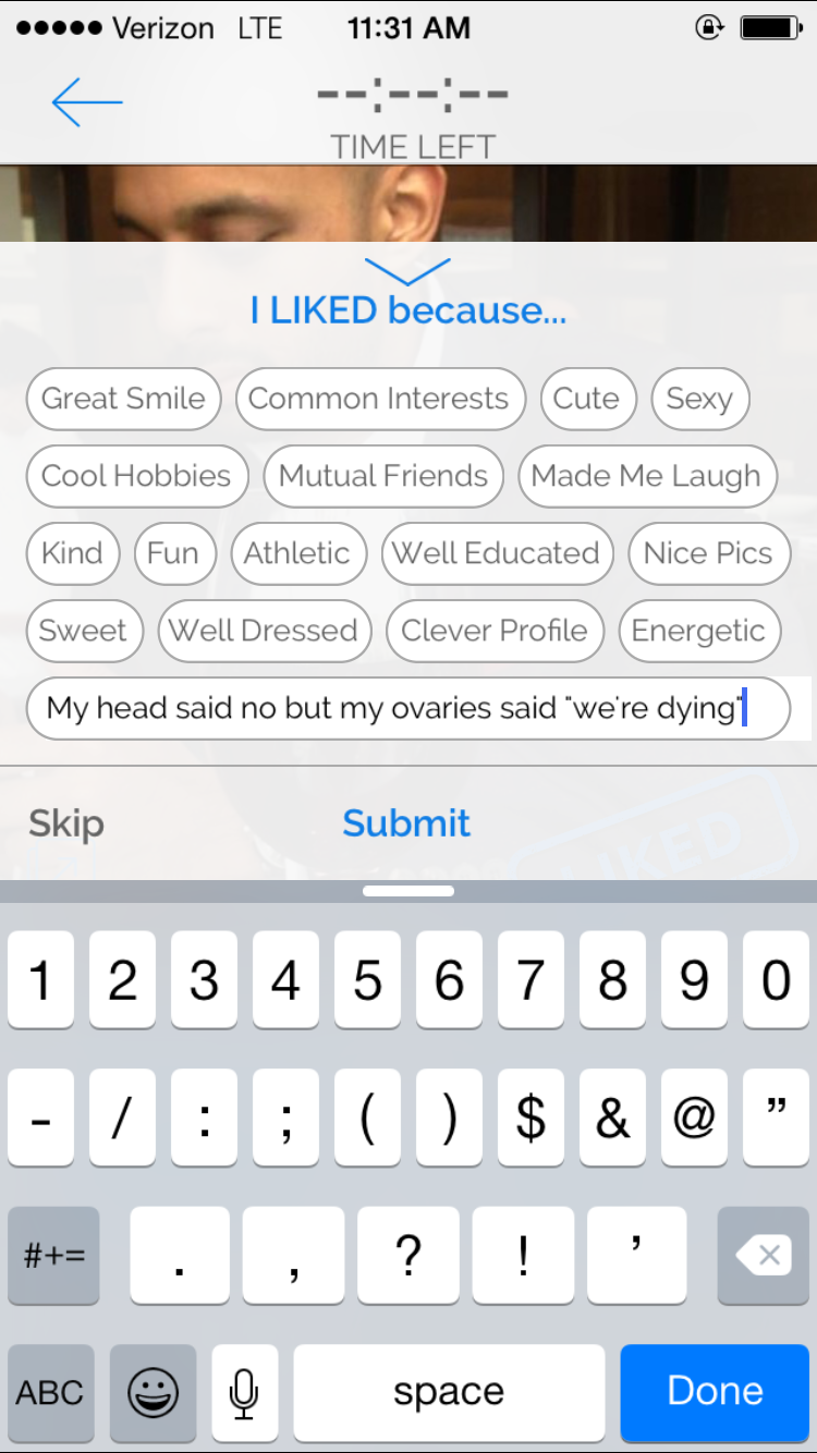 (Part of the Always Be Honest With Your Dating App series)