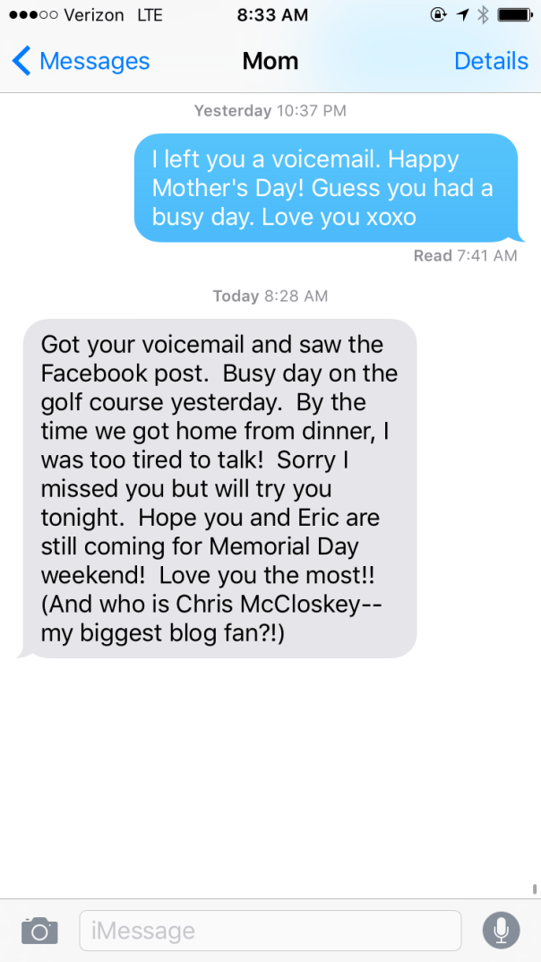 Then, hours later, Mom, unable to figure out the tricky mechanics of group texting (she has an iPhone), sent this to just Jeremy: