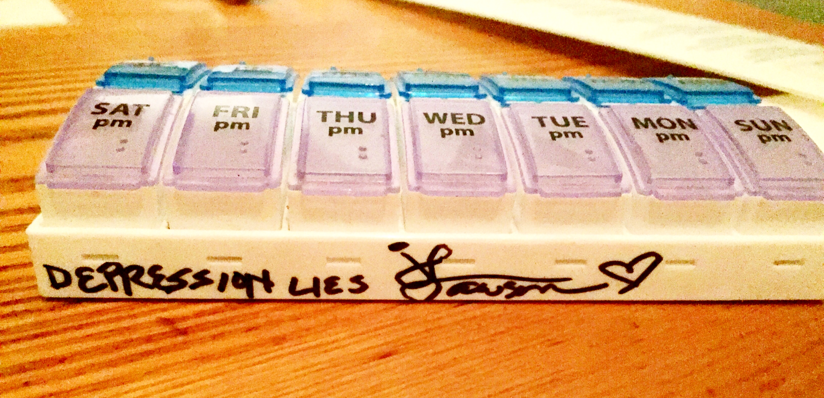 I use my pill case every single day (and so does Jenny, by the way– “Oh! I have this very same pill case!” she exclaimed as she took it from me with what I think was compassion and understanding, but might have been fear). I wake up and diligently swallow my Prozac, doing my part to fight the demons (note: the Prozac is just one small part. I see a psychiatrist weekly, run my heart out, fundraise for mental health org Active Minds, write/blog my thoughts as honestly as possible, and surround myself with the most supportive, awesome family and friends– all forms of depression-fighting therapy).