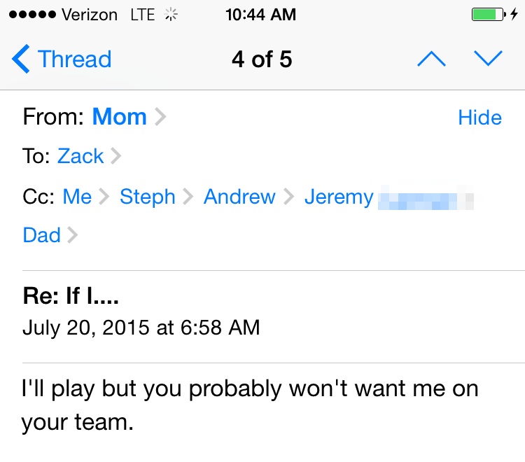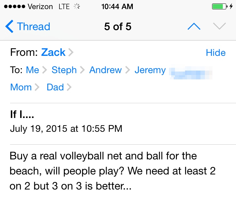 Now, in my family’s defense, there was a major caveat involved in moving the vacation dates. We have been in the same rental house for about 8 years now, and the house is freakin awesome. We all love it. And the problem is that if we were to give up our two end-of-August weeks THIS year, we would then lose the house during this August block for future years. Since end of August is (typically) the best time for all of us to take off work and be there, we want to secure the house on those dates for the future, and giving it up this year would jeopardize that. So I kind of get it.