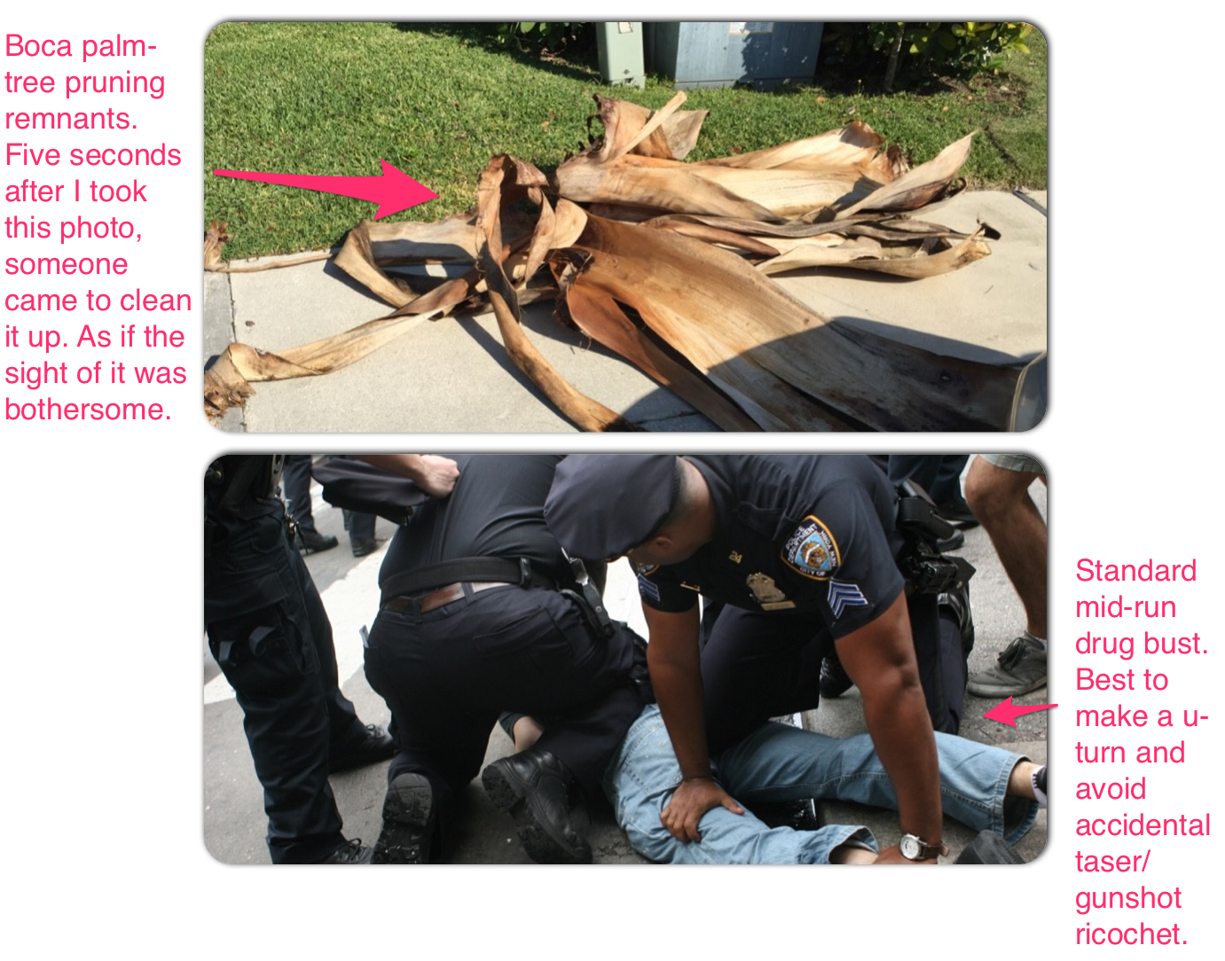 On my daily morning run here in sunny Boca Raton, Florida, I couldn’t hep but compare the contrasting aspects of my exercise routine down here vs. in NYC. Let’s look at these three categories: