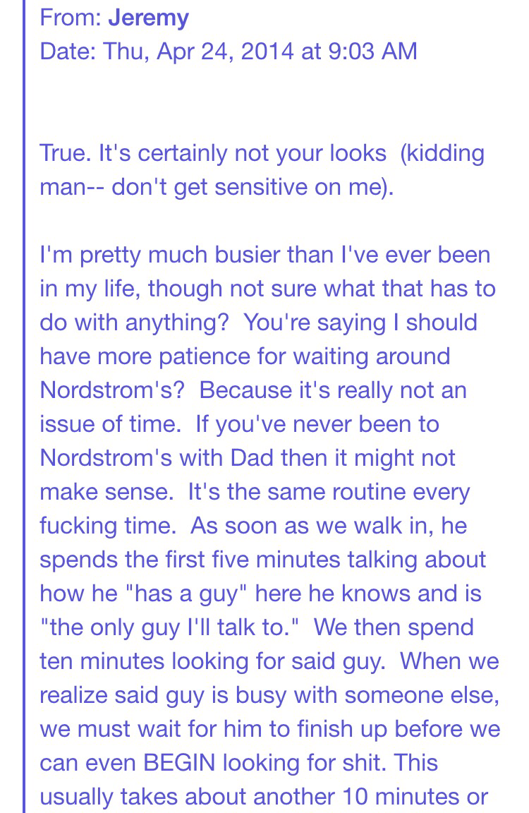 But when I showed Steph the email (with some great side commentary added in by yours truly), she wouldn’t let me post it. Even though almost 10 years have passed since it was written.