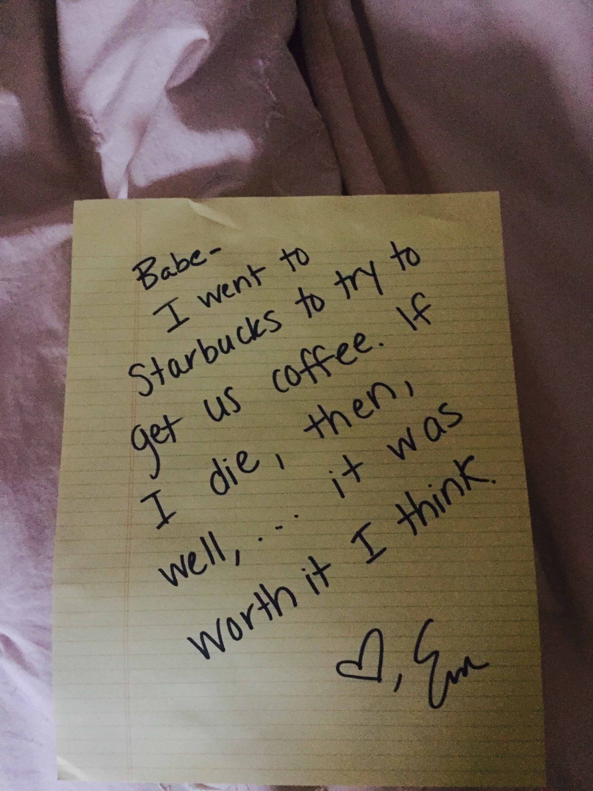 I am sitting in a large window nook at Starbucks doing work. The nook is meant for sitting– there is another woman here too, working on her laptop. As we’re typing away, a man walks in with a screaming baby. That’s fine– babies scream. You know what’s NOT fine? When he lay the baby down 6 INCHES FROM MY LAP and changed his shit-filled diaper, right next to my Peach Tranquility tea and half-eaten Kind bar.